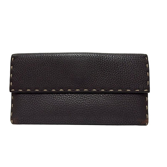 Fendi Long Wallet Selleria 8m0144 Dark Brown Leather