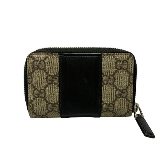 Gucci Coin Case GG Supreme 451242 Beige X Dark Brown X Black Round Zipper