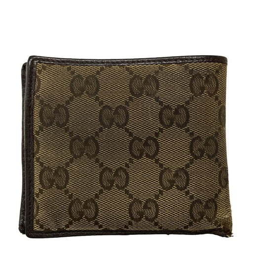 Gucci Bifold Wallet In GG Pattern 04862 Beige And Dark Brown Leather