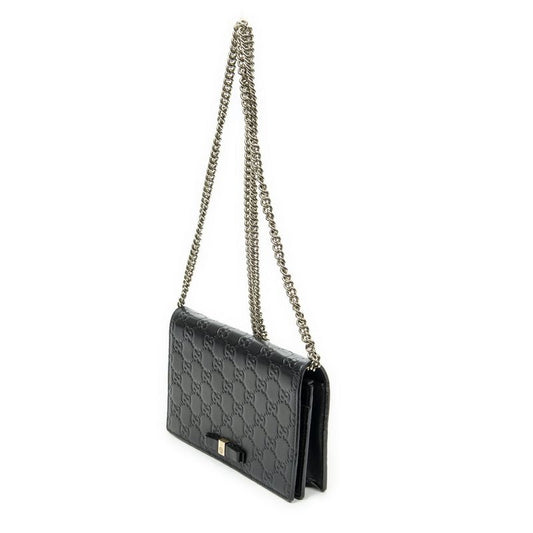 Gucci Signature Bow Chain Wallet Black Guccissima A