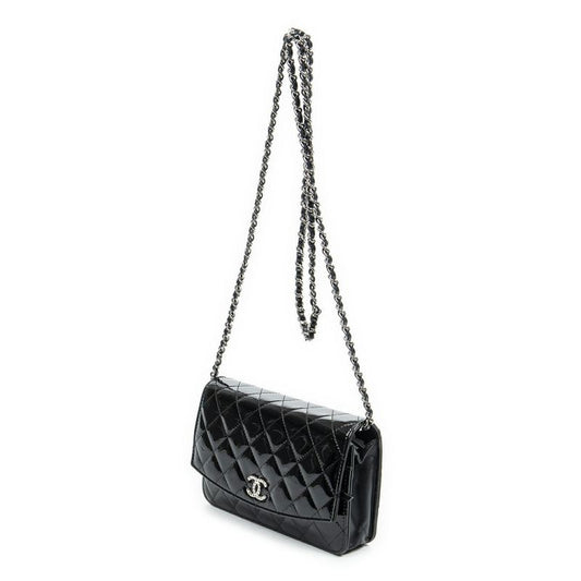Chanel CC Wallet Black Matelasse Patent Leather A On Chain