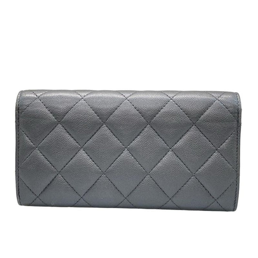 Chanel Long Wallet CC Filigree Navy And Black Gold Hardware Round Zipper Leather