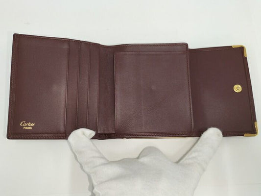 Cartier Compact Wallet Trifold Clasp Closure Mastline Leather Bordeaux