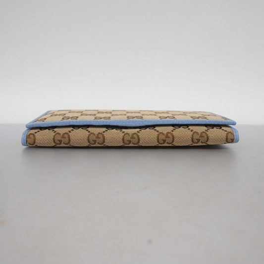 Gucci Long Wallet GG Canvas 346058 Canvas Brown Blue Gold Hardware Women