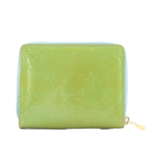 Louis Vuitton Monogram Vernis Blum Fold Wallet Round Zipper Coin Purse Green
