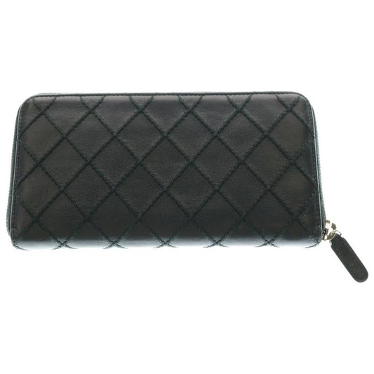 Chanel Wild Stitch Round Zipper Long Wallet Black Leather Silver Hardware