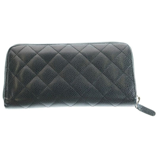 Chanel Matelasse Round Zipper Long Wallet Black Caviar Skin Gold Hardware Wallet