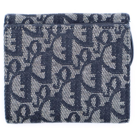 Christian Dior Trotter Trifold Wallet Compact Wallet Coin Case Black Canvas And