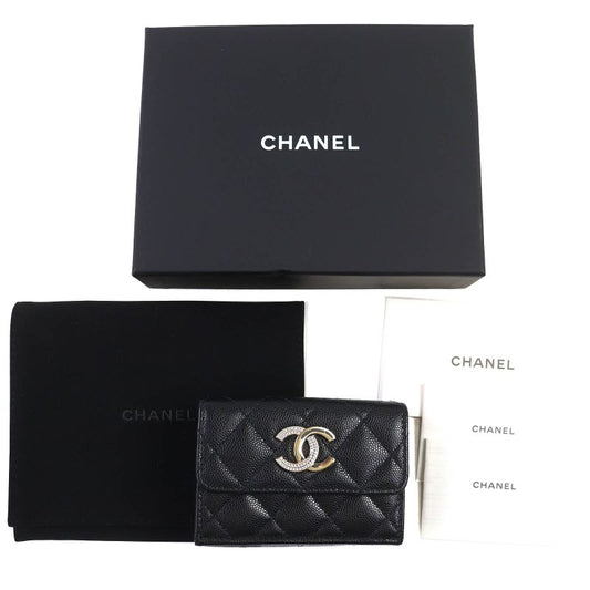 CHANEL Ap4173 Caviar Skin Coco Mark Matelasse Small Flap Wallet Trifold Wallet
