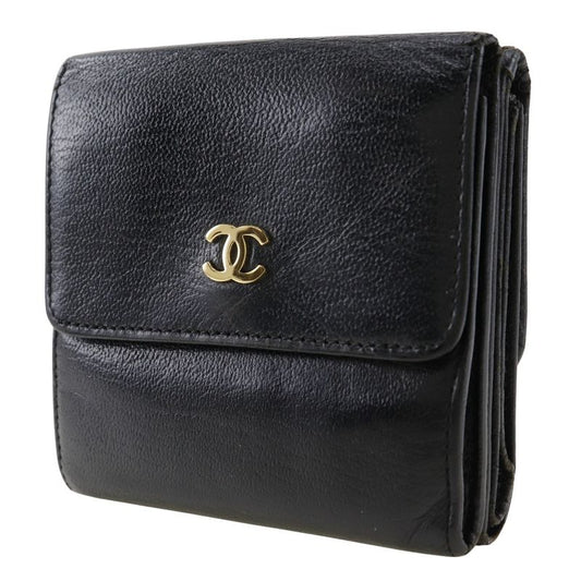 Chanel Coco Mark W Hook A13456 Calf Black Ladies Bifold Wallet