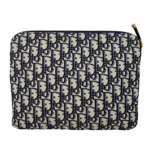 Christian Dior Pouch Travel Kit Oblique Navy Beige Gold Hardware