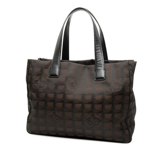Chanel New Travel Line MM Tote Handbag Brown Black Nylon Leather Ladies Chanel