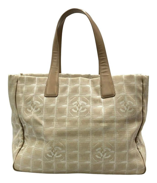 Chanel Tote New Travel Nylon Beige Silver Hardware Women's