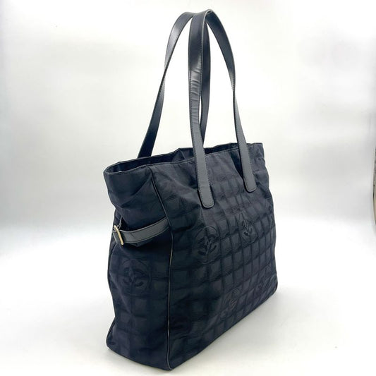 Chanel Handbag Tote New Travel Line MM Nylon Canvas Black Ladies Men Vintage
