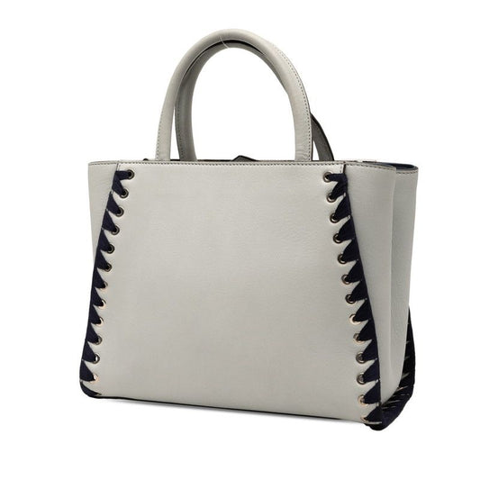Fendi Petit Toujours Handbag Shoulder Bag 2WAY 8bh253 Grey Navy Leather Women's