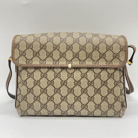 Gucci Old Gucci 001 113 6165 Shoulder Bag GG Supreme Leather Beige Brown Ladies