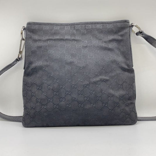 Gucci 131211 Shoulder Bag Crossbody Messenger GG Canvas Leather Black Ladies