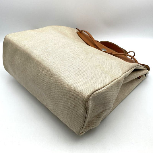 Hermes Herbag Handbag Shoulder Bag 2way Canvas Leather Ivory Brown Ladies Men