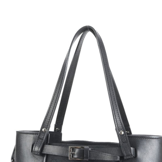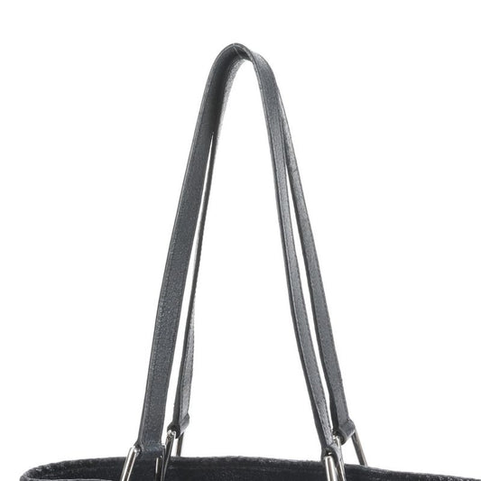 Gucci GG Canvas 107757 Leather Tote Bag Shoulder Black Silver Hardware Women's
