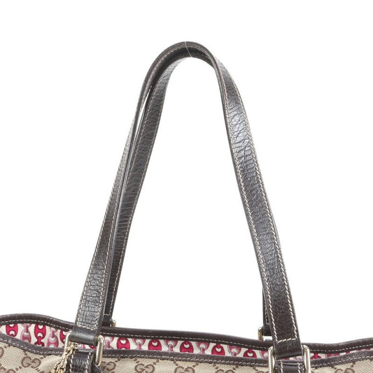 Gucci GG Canvas Abby Leather Tote Bag Shoulder Brown Gold Hardware 141471