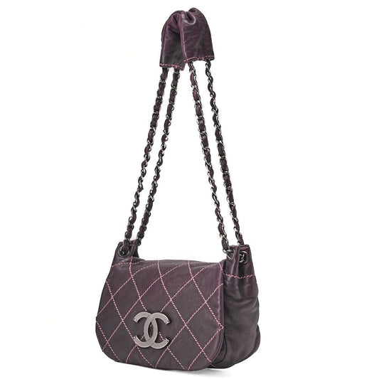 Chanel Shoulder Bag Matelasse Wild Stitch Decacoco Lambskin Purple Silver
