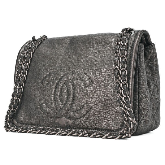 Chanel Matelasse Coco Mark Chain Shoulder Soft Caviar Skin Silver (silver