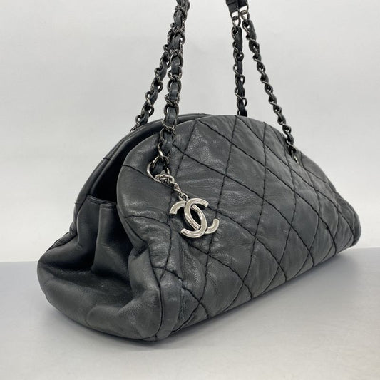 Chanel Shoulder Bag Matelasse Mademoiselle Beauring Bag Leather Black Silver