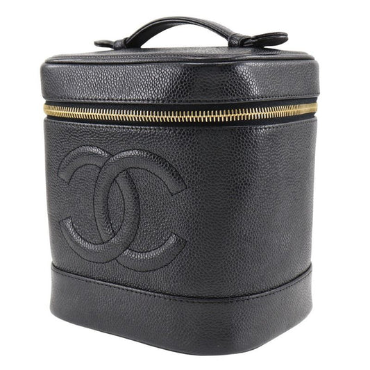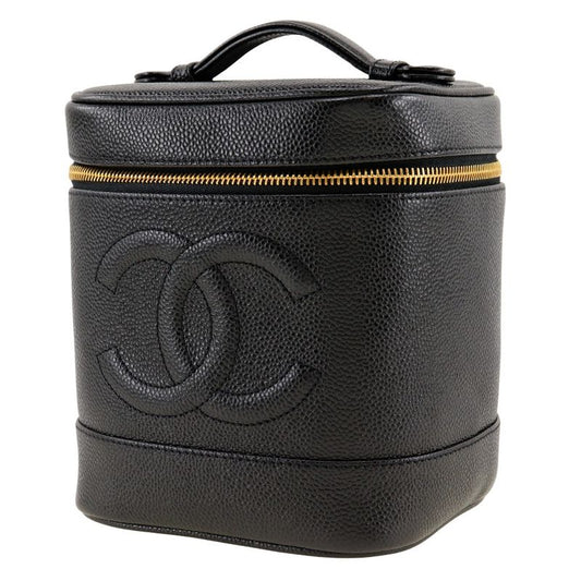 Chanel Vanity Coco Mark Handbag Caviar Skin Black Ladies Handbag