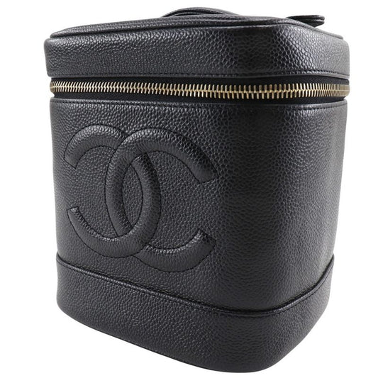 Chanel Vanity Coco Mark Handbag A01998 Caviar Skin Black Ladies Pouch
