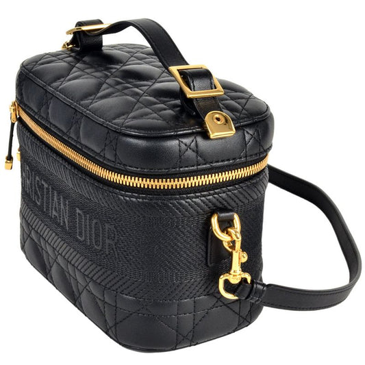 Dior Vanity Bag Shoulder Bag Leather Canvas Black