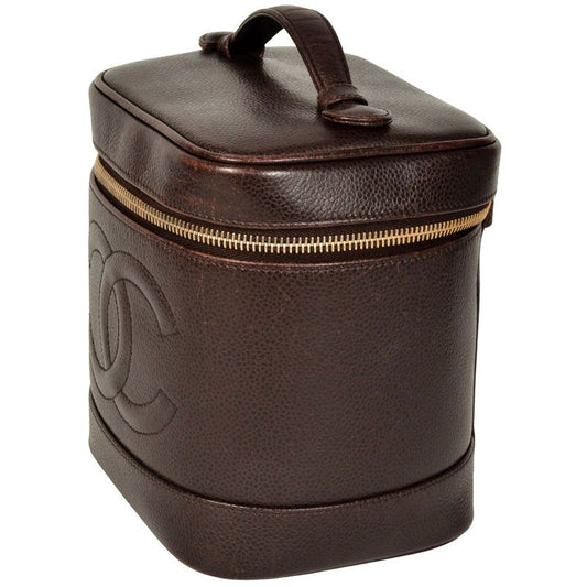 Chanel Coco Mark Vanity Bag Handbag Caviar Skin Brown