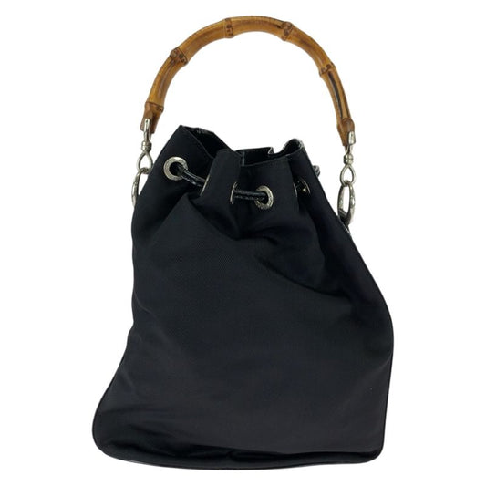 Gucci Bamboo Black Brown Nylon 001 2404 16570 Drawstring Shoulder Bag Handbag