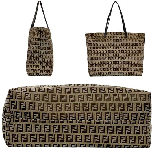 Fendi Tote Bag Beige Brown Zucchino 8bh025 Excellent Condition