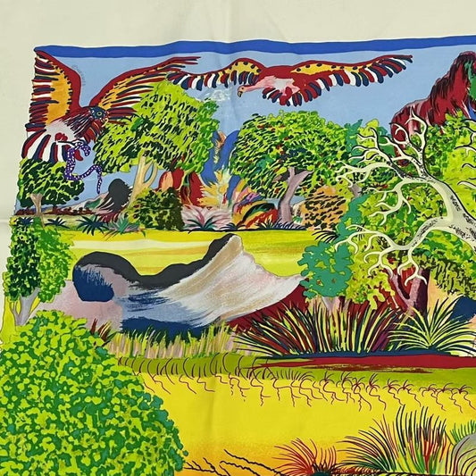 Hermes Carre 90 Nuba Mountain Nuba Mountain Scarf 100% Silk White