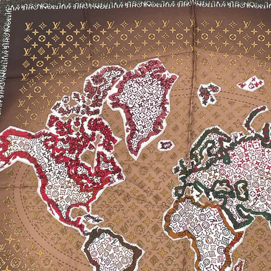 Louis Vuitton Scarf Silk Monogram Map Pattern Brown