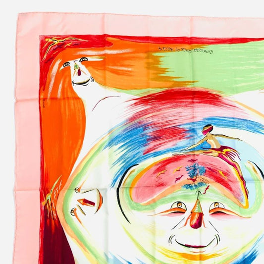 Hermes Carre 90 Smiles In Third Millenary Pink X Multicolor Scarf 100% Silk