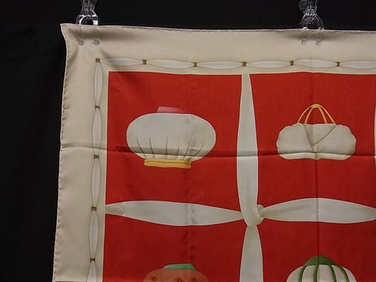 AttireBvlgari 100% Silk Turban Hat Pattern Large Scarf Shawl Beige And Red