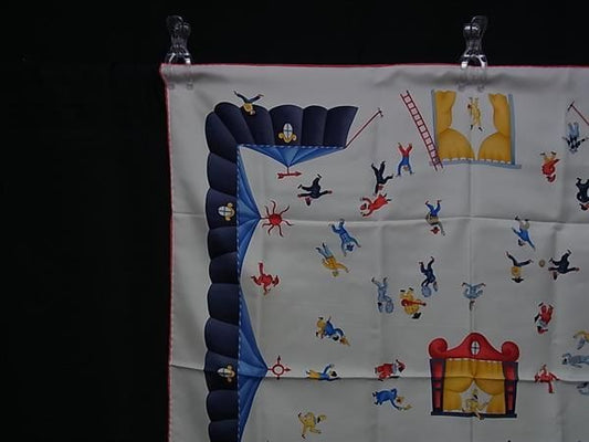 Bvlgari 100% Silk Large Scarf Shawl Women's Cream And Blue Fc5968