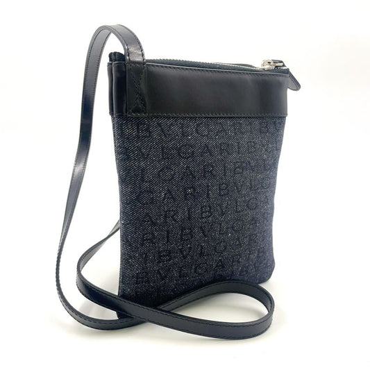 Bvlgari Logomania Leather And Canvas Black Shoulder Bag