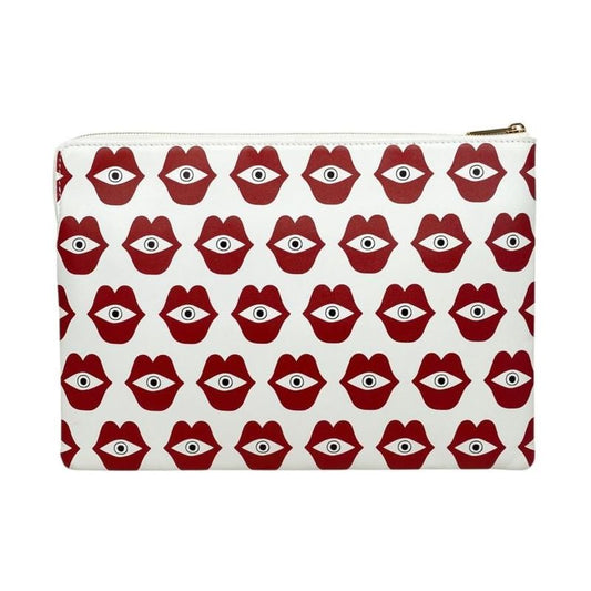 Celine Clutch Bag Telepathy Love Leather Logo Mouth Eye Red White Gold Hardware