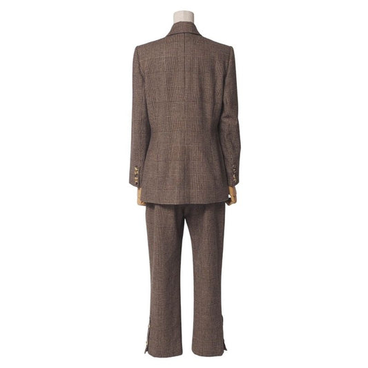 Celine Vintage Pantsuit Size 40 Tailored Jacket Gold Logo Decoration Hem Button