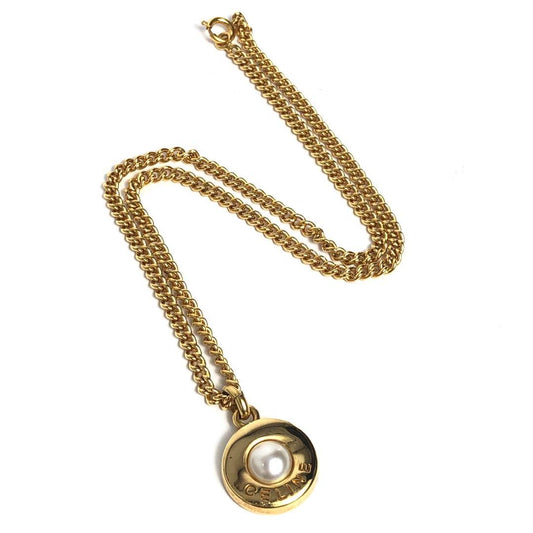 Celine Necklace Gold-colored Pearl Circle Logo Round Shape