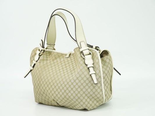 Authentic Celine Bittersweet Macadam Tote Handbag Canvas Leather Beige White