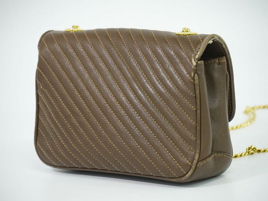 Authentic Celine Quilted Chain Shoulder Bag Pochette Leather Brown Bag Pre-owned