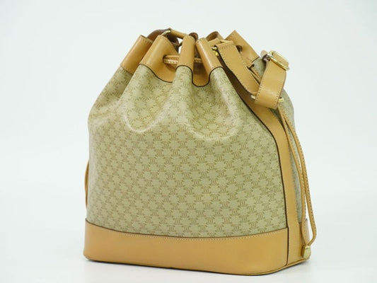 Authentic Celine Macadam Drawstring Shoulder Bag PVC Beige Macadam Bag Pre-owned