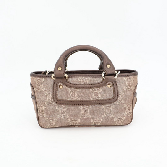 Authentic Celine Carriage Logo Tote Handbag Canvas Brown Bag Pre-owned [follow-u