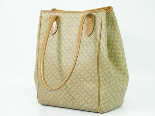 Authentic Celine Macadam Shoulder Bag Tote Bag PVC Beige Macadam Bag Pre-owned
