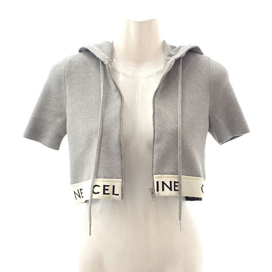 Celine Zip-up Logo 2a27z372n Hoodie Cotton Gray Women Short Sleeves [A Rank
