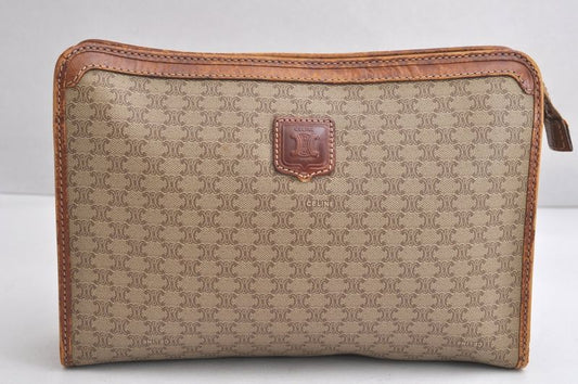 Celine Vintage Macadam Blazon Clutch Handbag Pvc Leather Brown 4532n