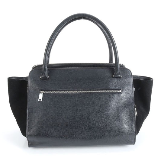 Celine Double Zipper Leather Tote Bag Shoulder Hand Genuine Leather Black A4